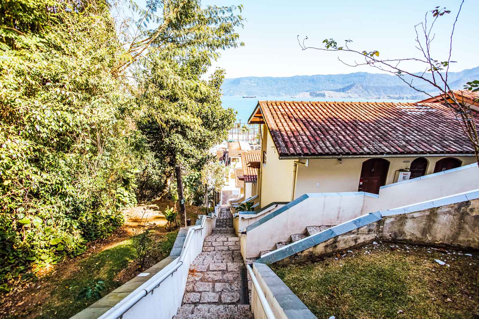 O diferencial da nossa pousada está em sua localização privilegiada e na vista espetacular. O acesso aos quartos é feito por escadas, o que nos permite oferecer as melhores vistas de Ilhabela.